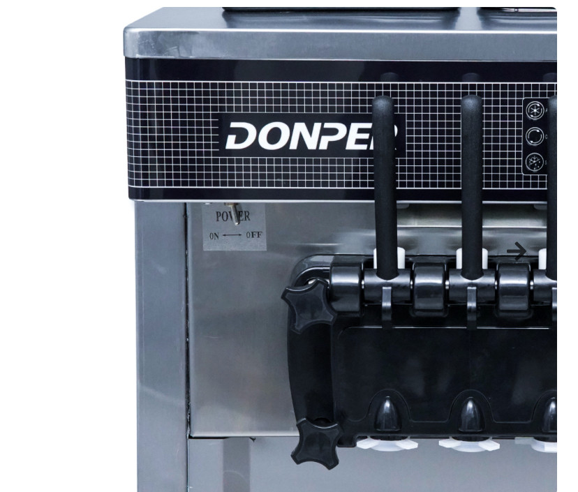 4. Для того чтобы получить порцию мороженного необходимо нажать на вытяжную ручку горловины. Правый и левый вытяжные клапаны имеют единственный вкус мороженного. Средний выпускной клапан производит смешанное мороженное.